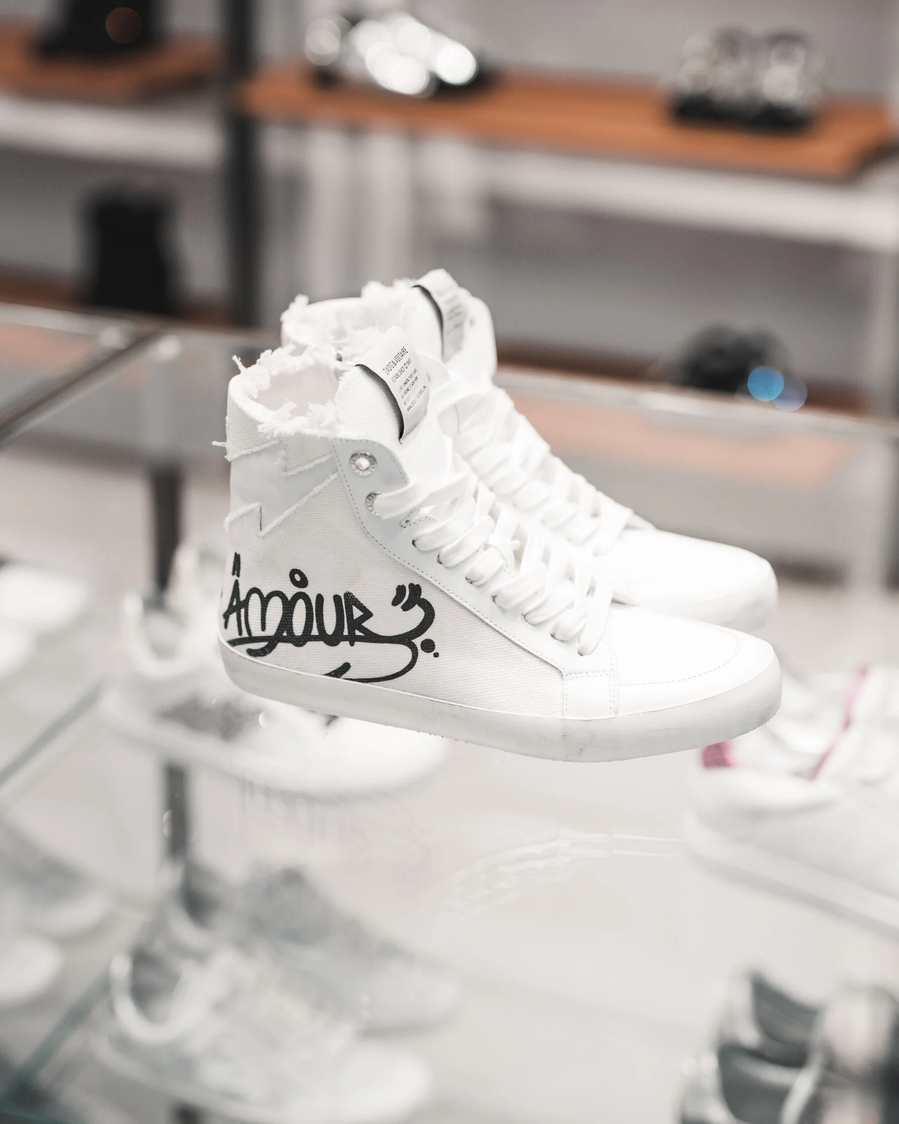 Currently on tour in LA at the Zadig & Voltaire stores, Jormi brings an extra edge to the already-edgy brand. Highly recognizable, Jormi’s artwork is a mix of handwriting, visual etchings and monochromatic symbols. I can’t help but feel that so much of her message is a coming together of her knowledge of the world and fusion of cultures (Jormi is from Venezuela, studied in Paris and now lives in NYC).
