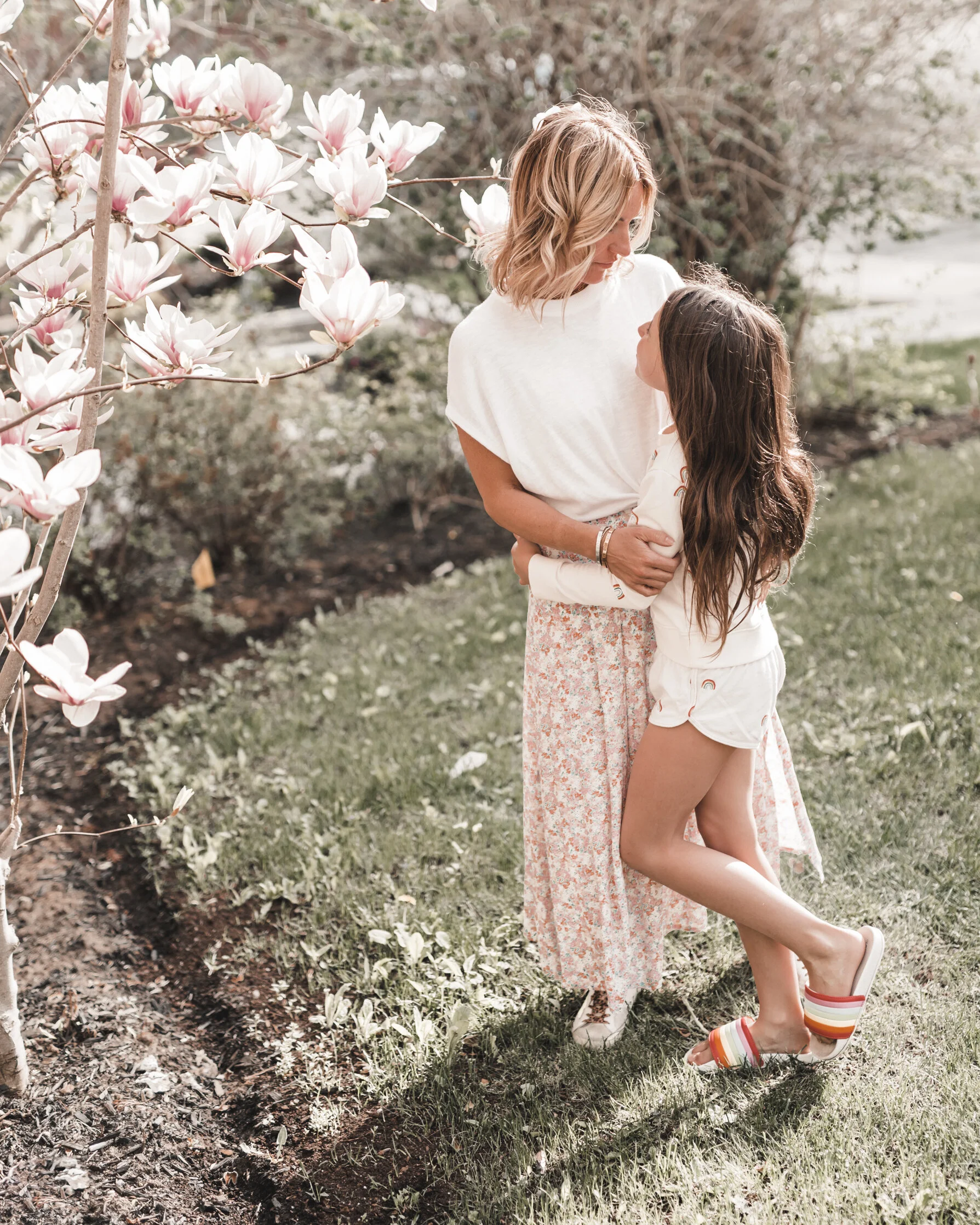 It must’ve been the stars that aligned, or the magnolias, because it was during my alone time with Lia that we shot outdoor photos for a few upcoming blogs, and as we twirled and laughed together on “set,” I noticed that our backdrop was our magnolia tree. That flower just manages to find its way into all of my precious moments.