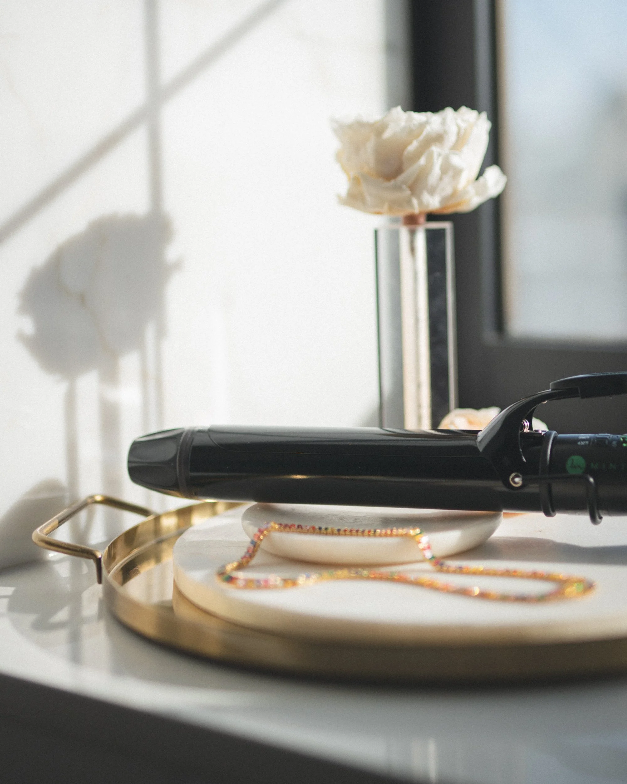 Everyone knows I spend a nice amount of time in front of the mirror pulling at my hair and styling it straight, curly, wavy, beachy, whatever the mood inspires. The Mint Curling Iron 1.5-inch Easy Long-Lasting Waves is exactly what the name describes. Easy, long-lasting waves! The perfect barrel size for those gorgeous, effortless beach waves.